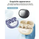 Auriculares Bluetooth Lenovo LE302 de diseño abierto tipo clip, cómodos y ligeros, ideales para deporte y uso diario. Ofrecen sonido estéreo envolvente, cancelación de ruido ENC para llamadas claras y baja latencia para música y juegos. Resistentes al sudor (IPX4) y compatibles con Android, iPhone y computadoras.