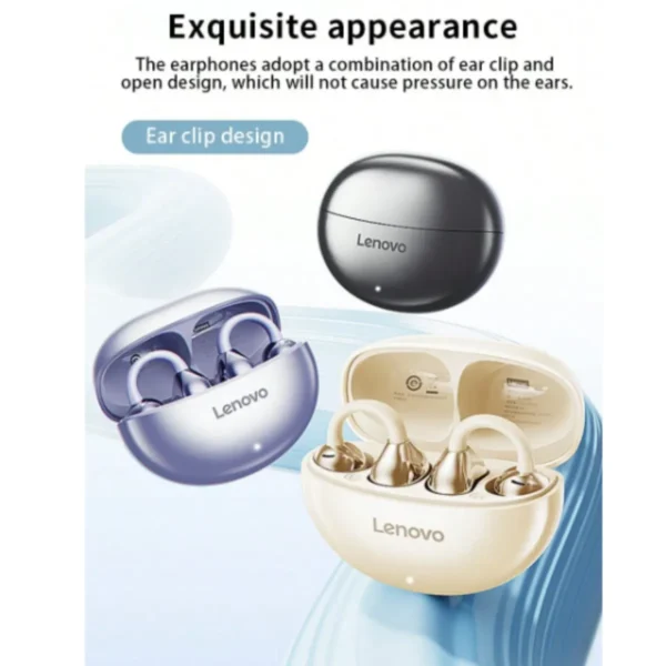 Descubre los nuevos Lenovo LE302, auriculares Bluetooth de diseño abierto tipo clip que se ajustan cómodamente a tu oreja sin introducirse en el canal auditivo. Ideales para quienes buscan comodidad prolongada, seguridad al entrenar y una experiencia de sonido envolvente de alta calidad sin aislamiento total del entorno.
