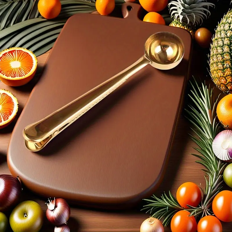 Fabricada en acero inoxidable 201, esta cuchara es resistente, duradera y fácil de limpiar. Su acabado dorado aporta un aspecto sofisticado, mientras que el clip incorporado permite cerrar bolsas de café, té o granos, conservando su frescura por más tiempo.