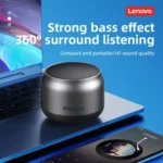 Altavoz Bluetooth portátil Lenovo K30 con sonido HiFi, resistente al agua y micrófono integrado. Ideal para usar en casa o exteriores con una experiencia de audio clara y potente.